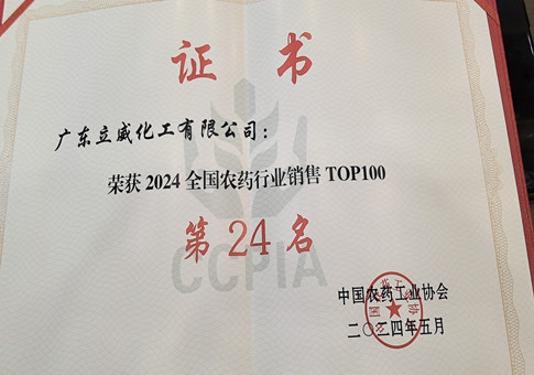 2024年5月21日,中國農(nóng)藥工業(yè)協(xié)會發(fā)布了2024全國農(nóng)藥行業(yè)銷售TOP100名單。廣東立威化工有限公司,以31.89億元的銷售額位居全國排名第24名。